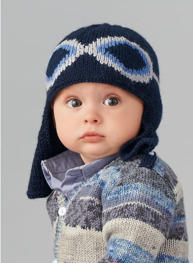 "De originele toets van deze muts: een mooie gebreide bril!! zonder baby te vergeten die zich goed beschermd zal voelen. "
